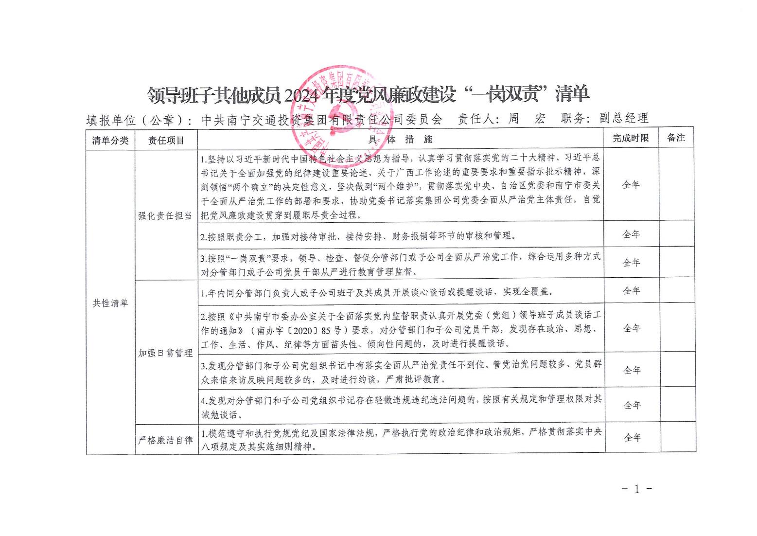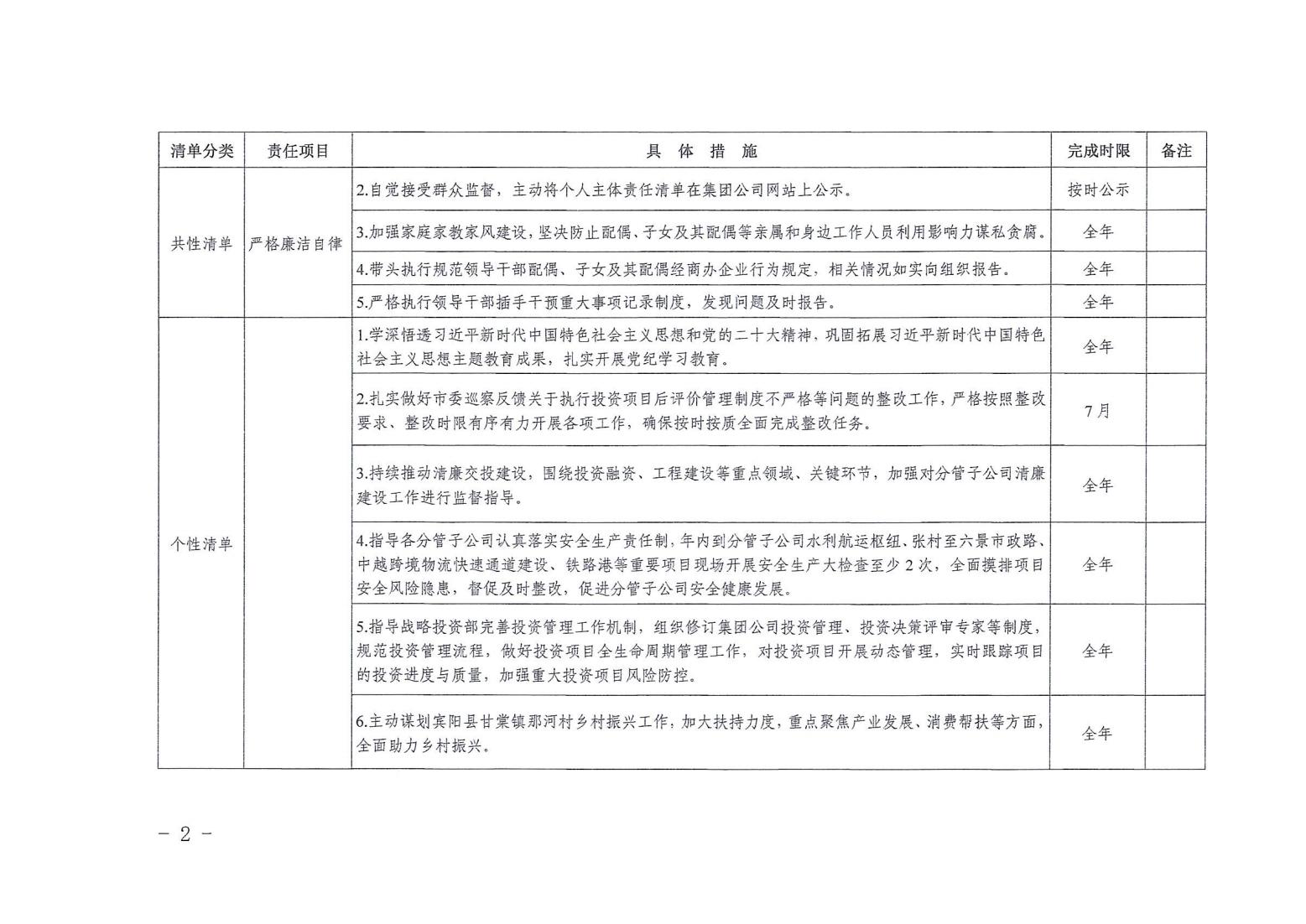領(lǐng)導班子其他成員2024年度黨風廉政建設(shè)“一崗雙責”清單(五)