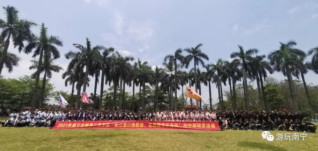 2021年5月8日,南寧市銀海三美學(xué)校初一年級(jí)800多名學(xué)生“邕江港口換新顏,黨的領(lǐng)導(dǎo)正東風(fēng)”研學(xué)活動(dòng)在南寧市老口航運(yùn)樞紐研學(xué)基地開展。