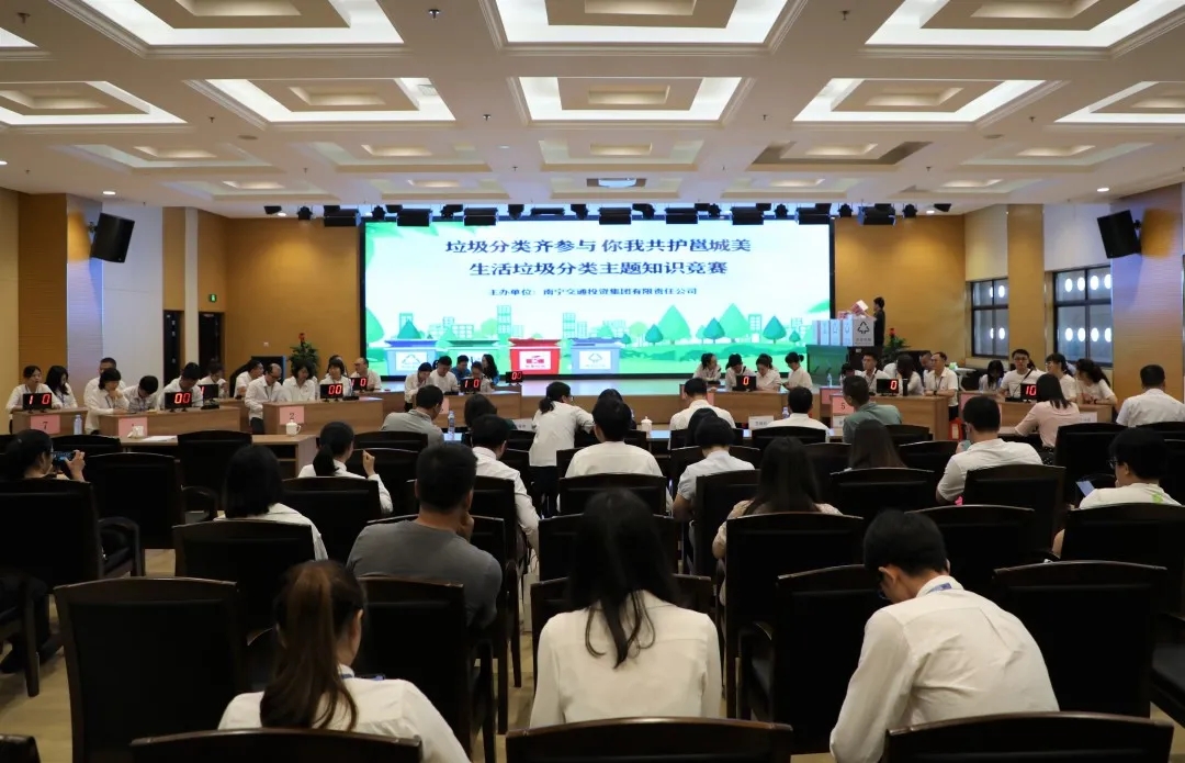 為深入貫徹習近平總書記關(guān)于生活垃圾分類的系列重要指示批示精神,加快推進集團公司生活垃圾分類工作,引導(dǎo)全體職工樹立環(huán)保意識,5月8日,南寧交投集團組織開展“垃圾分類齊參與,你我共護邕城美”趣味知識競賽活動,市國資委黨建科科長劉石清到現(xiàn)場指導(dǎo),集團公司領(lǐng)導(dǎo)農(nóng)明姬、羅維松、黃海燕、秦勝友,集團公司黨委委員吳江卡,以及各基層黨組織書記、黨員代表觀看了比賽。