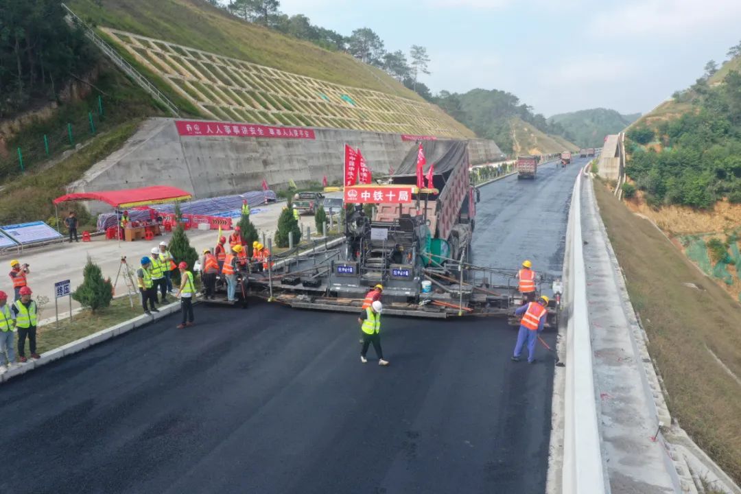 上橫高速公路完成首段瀝青下面層試驗段攤鋪作業(yè)