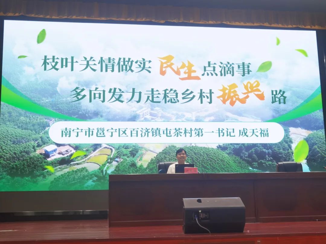 6月17日,南寧市委組織部在市委黨校舉辦2025年新一輪駐村第一書記示范培訓班,邀請了南寧交投集團下屬南寧高速公路公司選派邕寧區(qū)百濟鎮(zhèn)屯茶村原第一書記成天福進行授課。